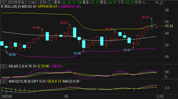 原油实时行情分析:原油震荡区间明显上移,暂定67.8-63.5区间整理,周一的回撤力度很小 ,下方的支撑分别关注64.7-64.2和63.5,阻力关注66-66.3区域压制点,向上破位依次参考67和67.8两个节点。方向判断看涨没错 ,但力度涨幅没有黄金来的刺激,直白说今年的重心不在原油上面,所以分析思路特别简单 ,仅供各位道友做参考。今日操作上刘铭诚建议以周线MA30均线64.7和日线MA60均线64.2形成的支撑范围看涨对待,高位触及阻力节点正常做短空。